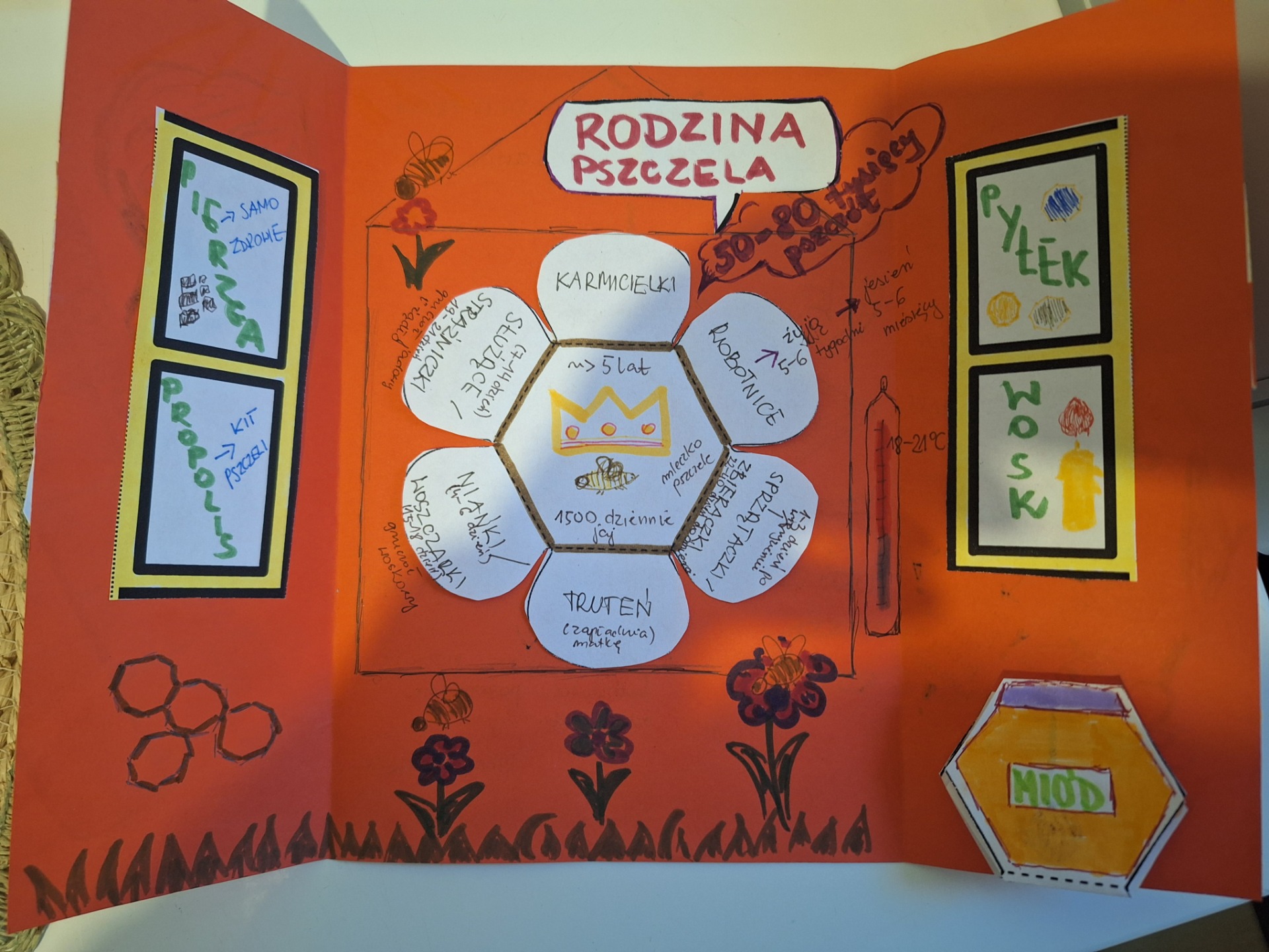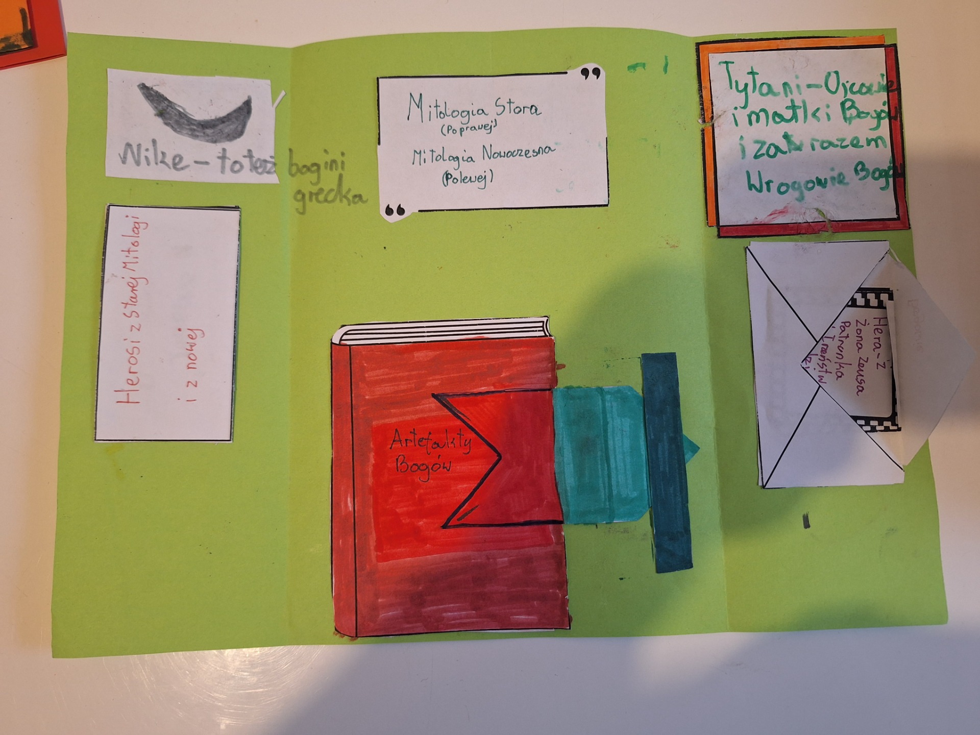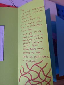Na kolejnych zajęciach z pedagogiem uczniowie, w ramach projektu "Uczę się uczyć się" poznali kolejną metodę przyswajania wiedzy za pomocą lapbooka. Ćwiczyli w ten sposób umiejętność wybierania i kategoryzowania wiadomości. Dowiedzieli się również jaką rolę w zapamiętywaniu odgywają obrazy, kolory, różne kolorowe elementy. Każdy mógł wykonać lapbook dotyczący zainteresowań, tak więc oprócz tematyki bogów pojawił się lapbook dotyczący kebaba, odpoczynku, ulubionej gry, sportu itp. Jako przykład został wykonany przez prowadzącego lapbook dotyczący znaczenia pszczół.